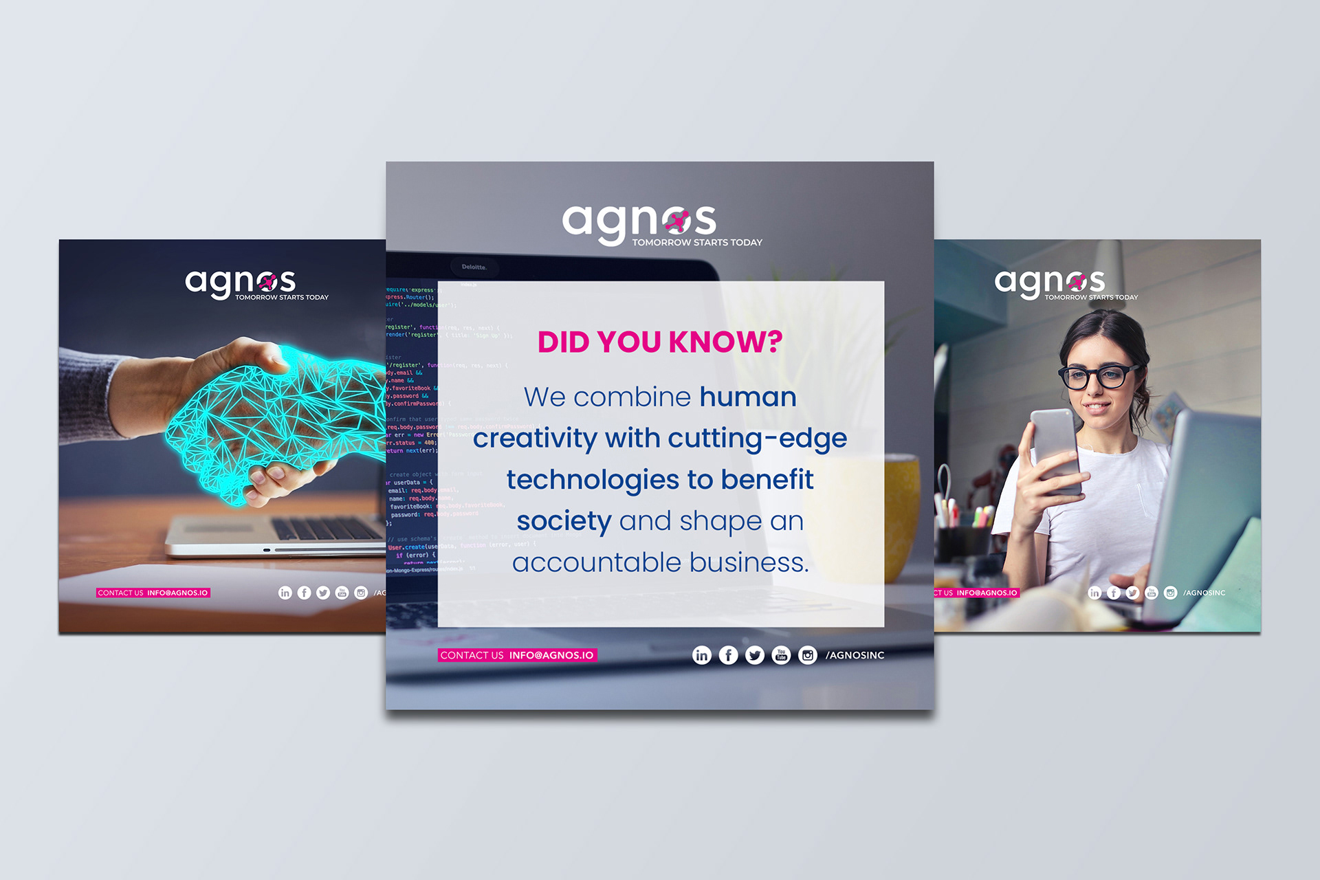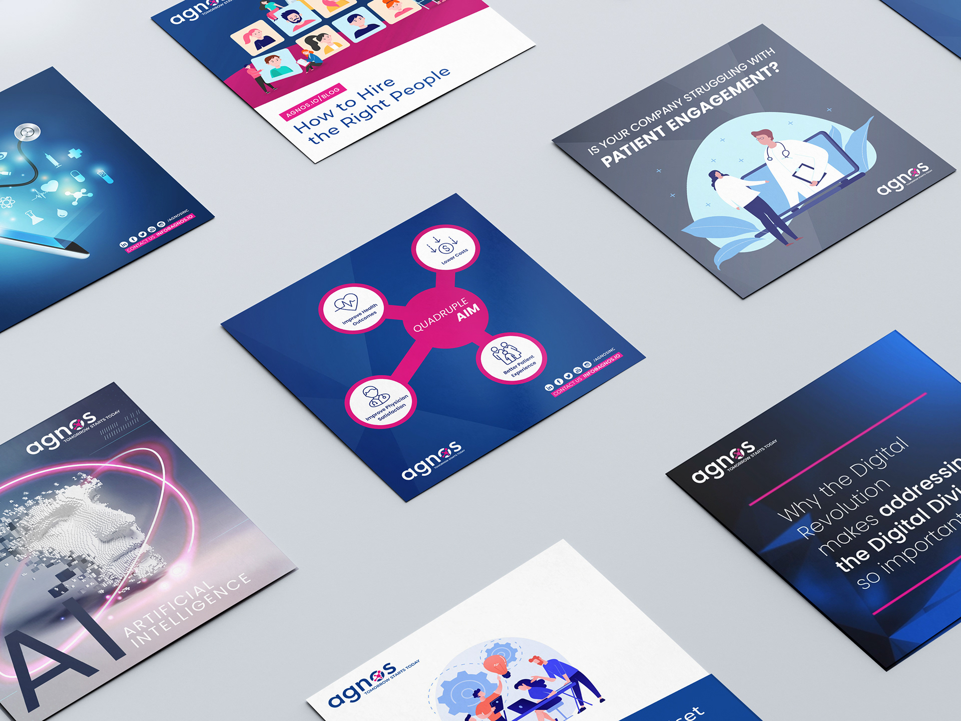 Graphic and audiovisual design for Agnos, a software company specializing in the healthcare industry. Managed social media via HubSpot and coordinated an international team through Jira.