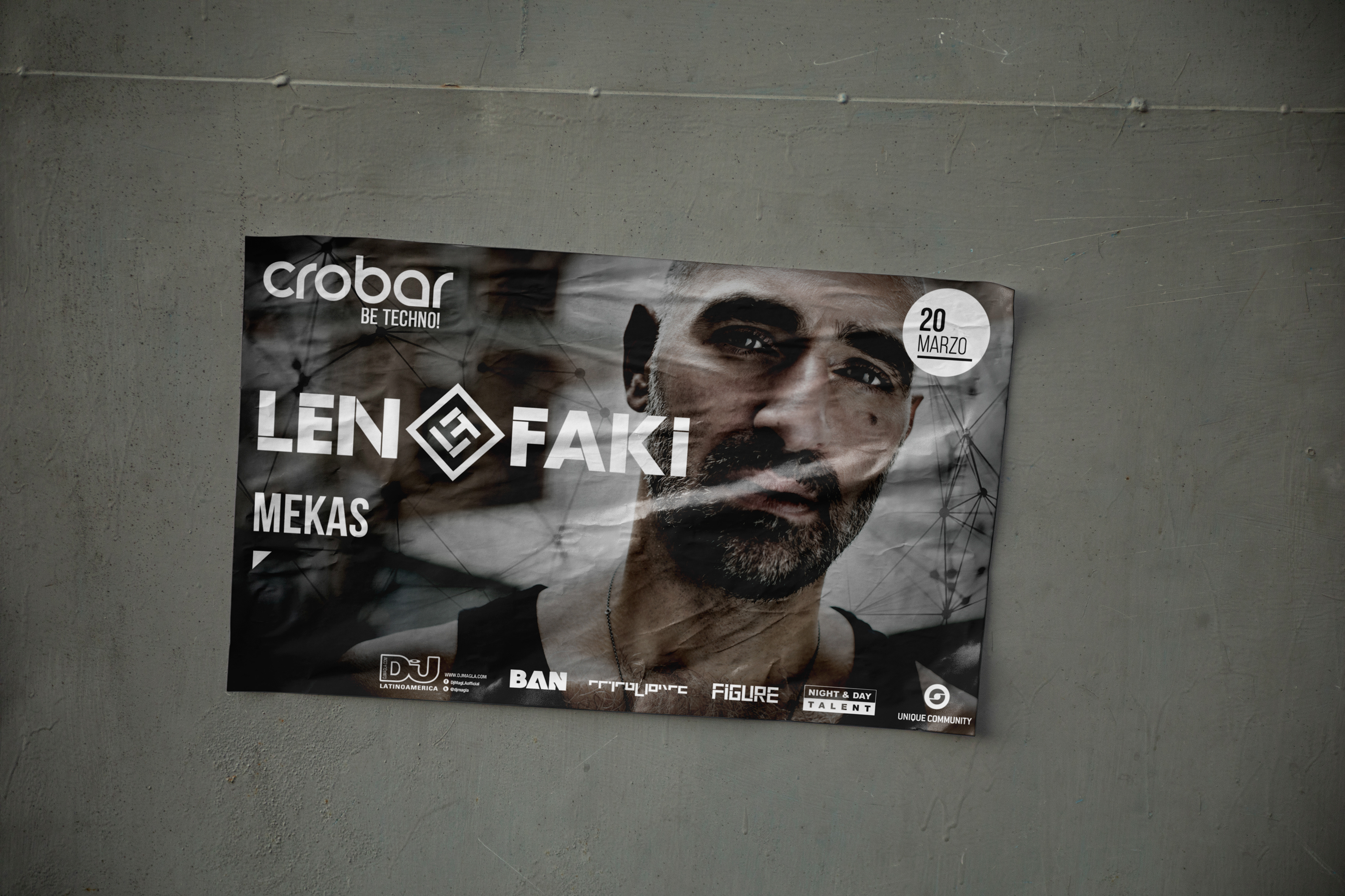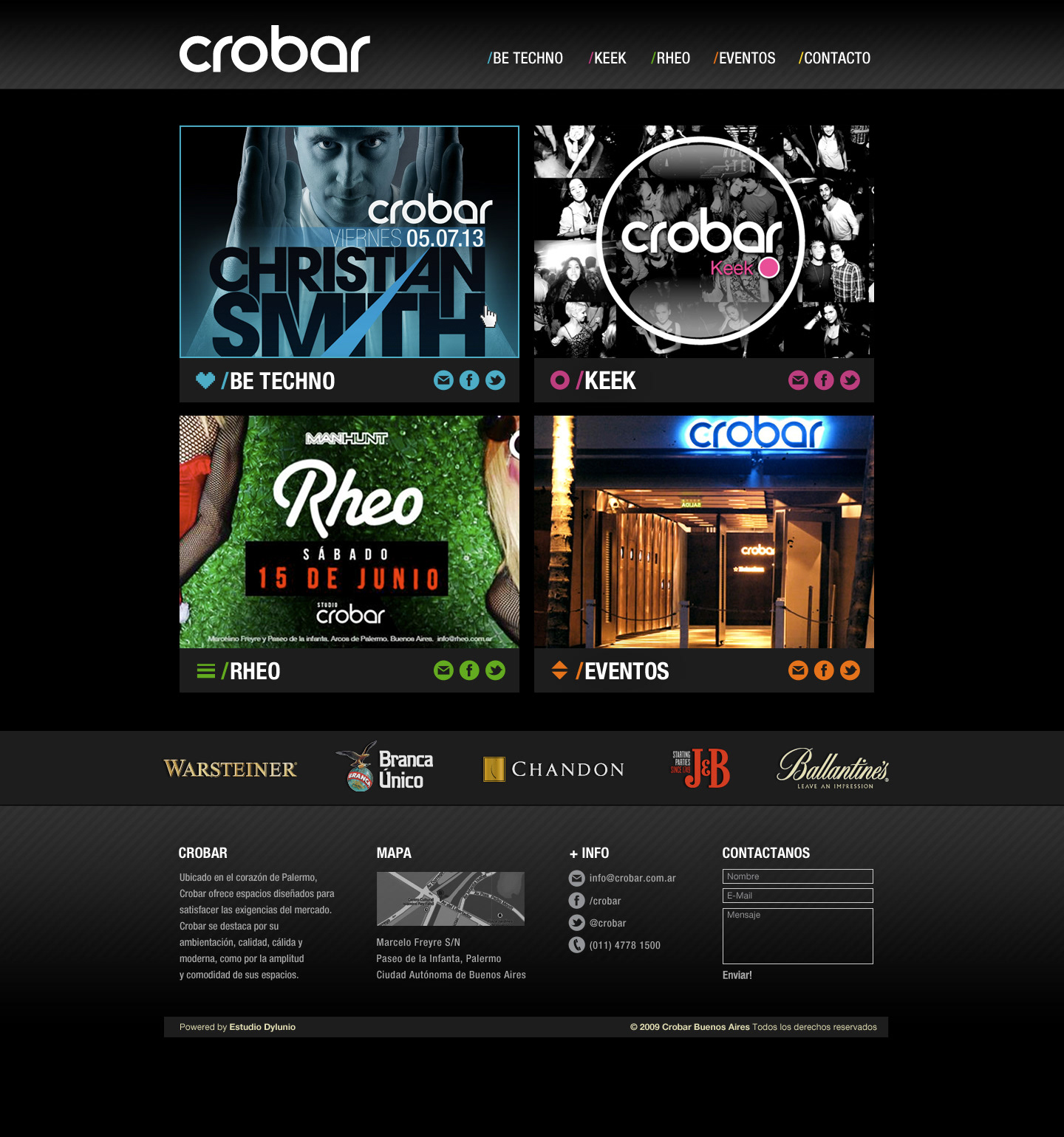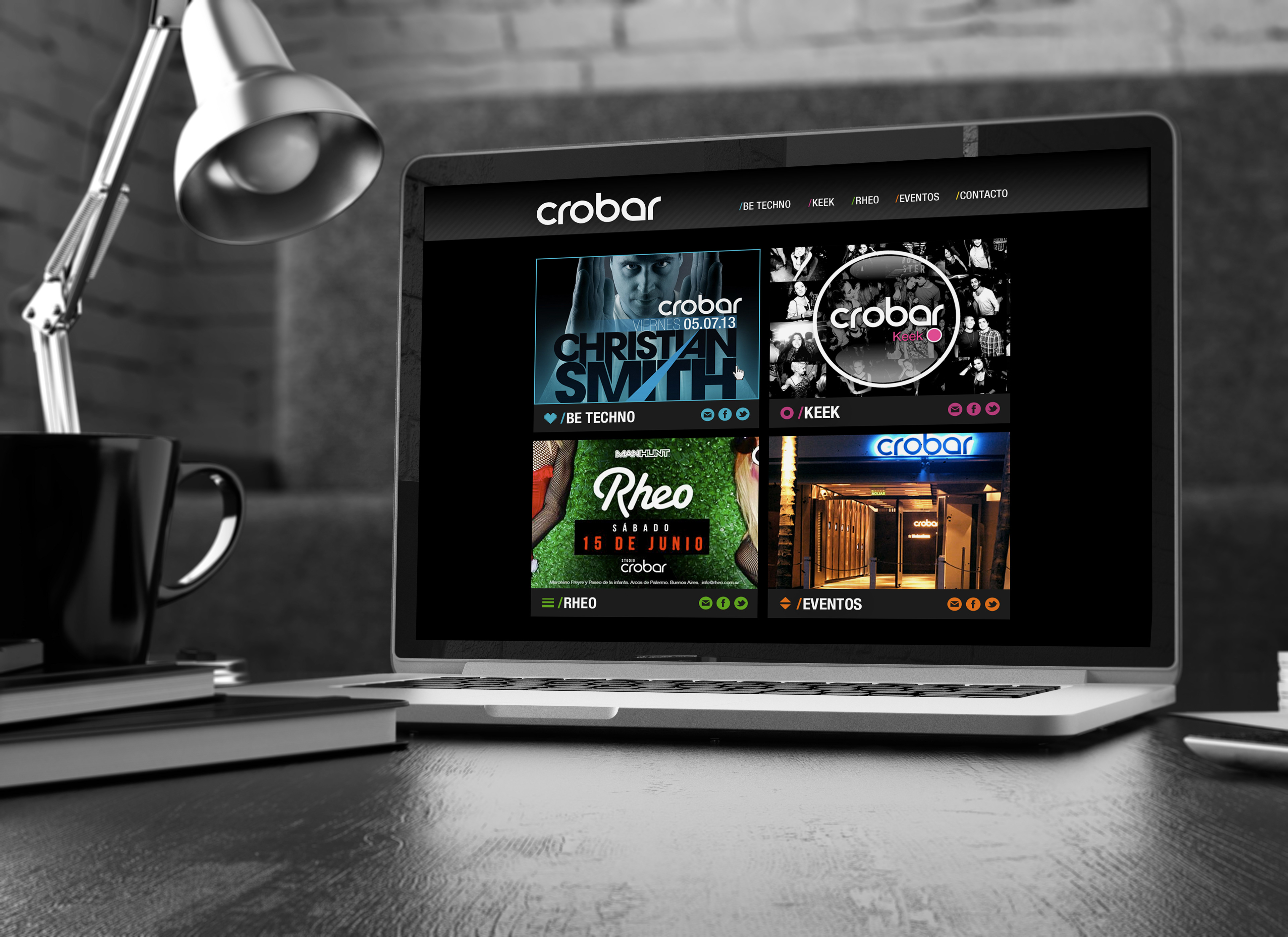 Design of flyers, website, and promotional material for Crobar nightclub. Artists included Kolombo, Sharam, Hosh, Jerome Isma-Ae, and Marc Houle. Produced in 2014–2015 for one of Buenos Aires’ premier techno venues.